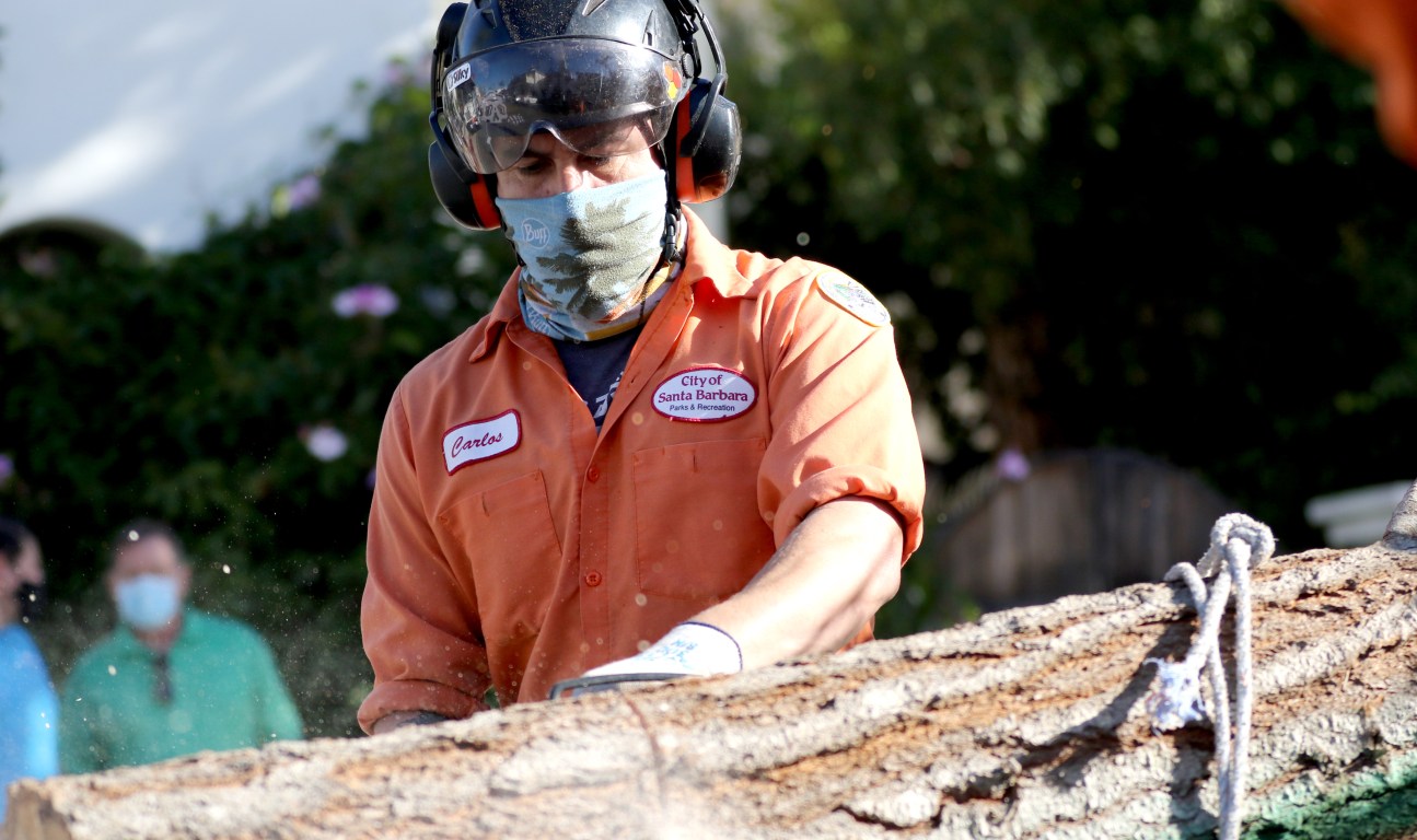 The tree was delivered from a sustainable farm that plants four trees for every one sold. This year the presenting sponsor, Consumer Fire Products, Inc., delivered the tree and the City of Santa Barbara’s Public Works department spent over an hour installing it along with Mike Dawson of the Big Red Crane Company.
