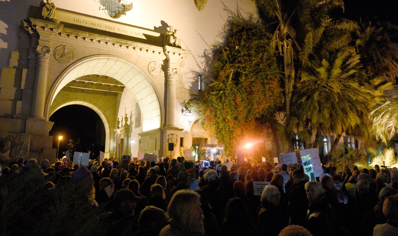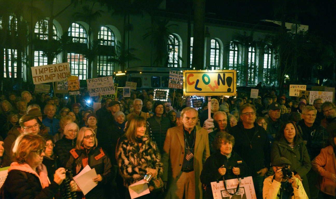 Hundreds gathered at the Santa Barbara Courthouse Tuesday night to rally for the impeachment of Donald Trump. (December 17 2019)