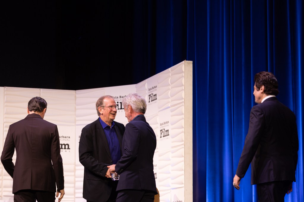 “The fact that these fine gents are sitting together shows the respect they have for each other,” said One Battle After Another director Paul Thomas Anderson (PTA) as he presented his three stars — Academy Award nominated actors Leonardo DiCaprio, Sean Penn, and Benicio Del Toro — with SBIFF’s 2026 Hammond Cinema Vanguard Award last night.