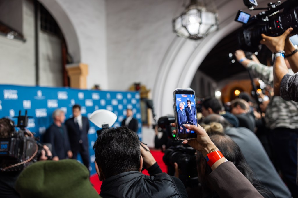 Photographers snapping shots of Sean Penn and Benicio del Toro at the SBIFF Hammond Cinema Vanguard Awards, Arlington Theatre, February 9, 2926 | Photo: Ingrid Bostrom