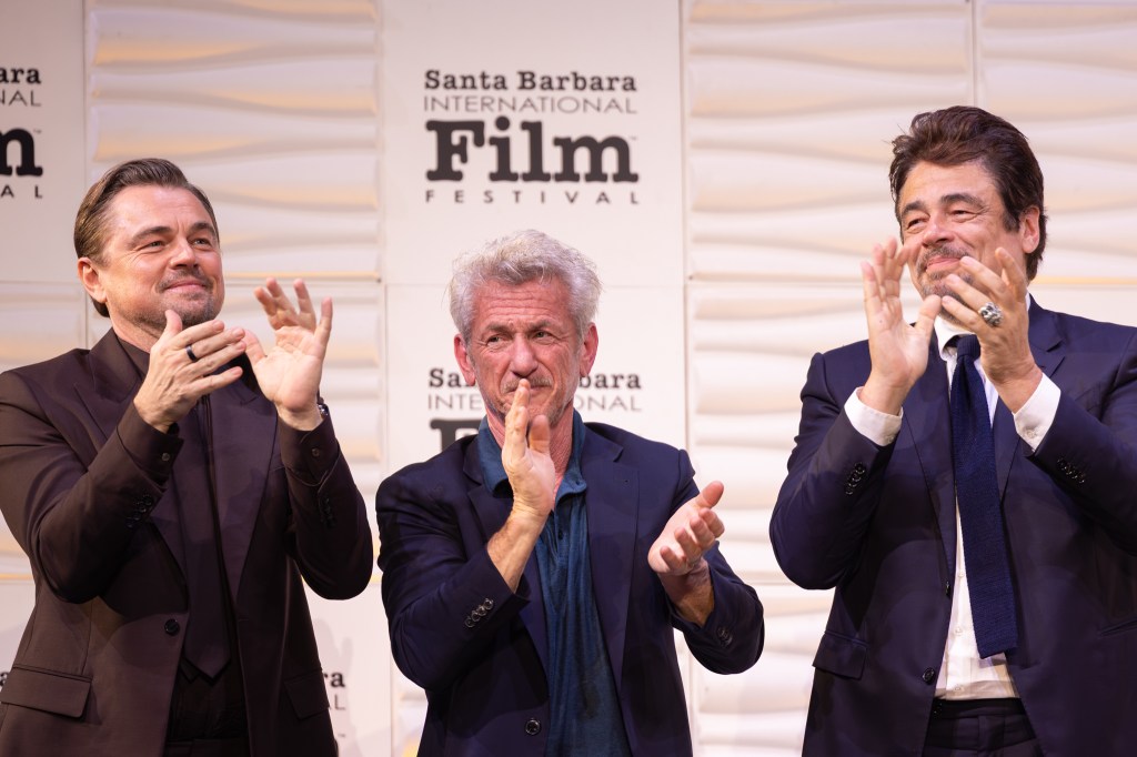 Leonardo DiCaprio, Sean Penn, and Benicio del Toro at the SBIFF Hammond Cinema Vanguard Awards, Arlington Theatre, February 9, 2926 | Photo: Ingrid Bostrom