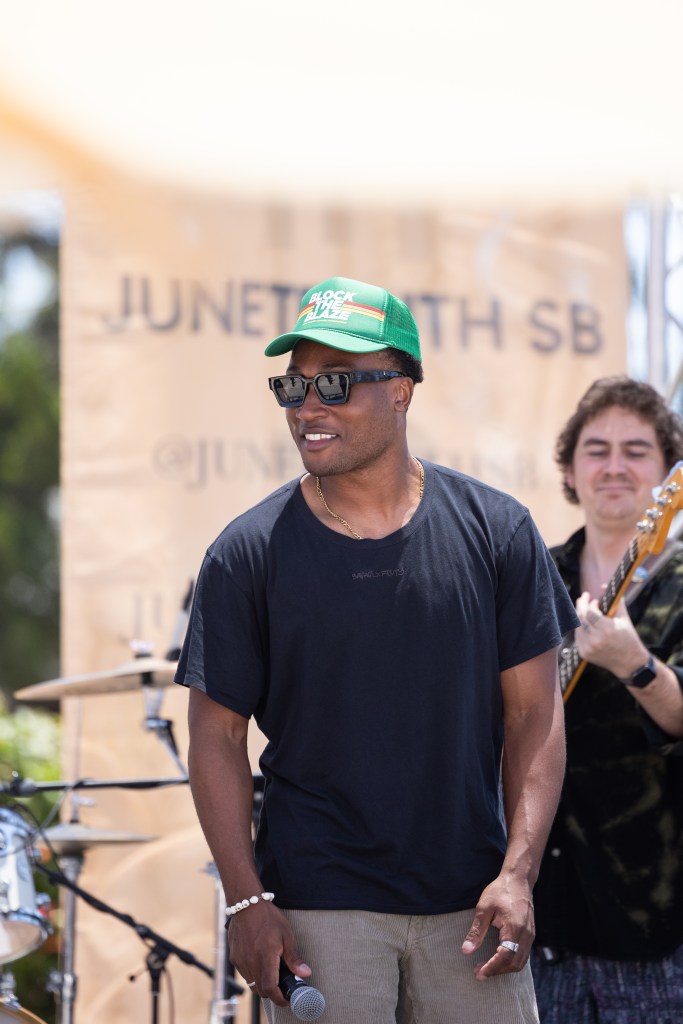 The joys of Juneteenth came early to Santa Barbara on Saturday with the “Joy for the People” block party in the Funk Zone, a historically Black part of our region. While, Wednesday, June 19, is a Federal Holiday, the free event on the 100 block of Gray Avenue got the celebration started early with live performances by Black talent including emcee Vivian Storm, Talitha Blackwell, Pastor David Moore, Aria Elan, Kat Lincoln, Brayell, The AD Project, P Money Experience, and The Knew Vibe, with DJ Tempest.