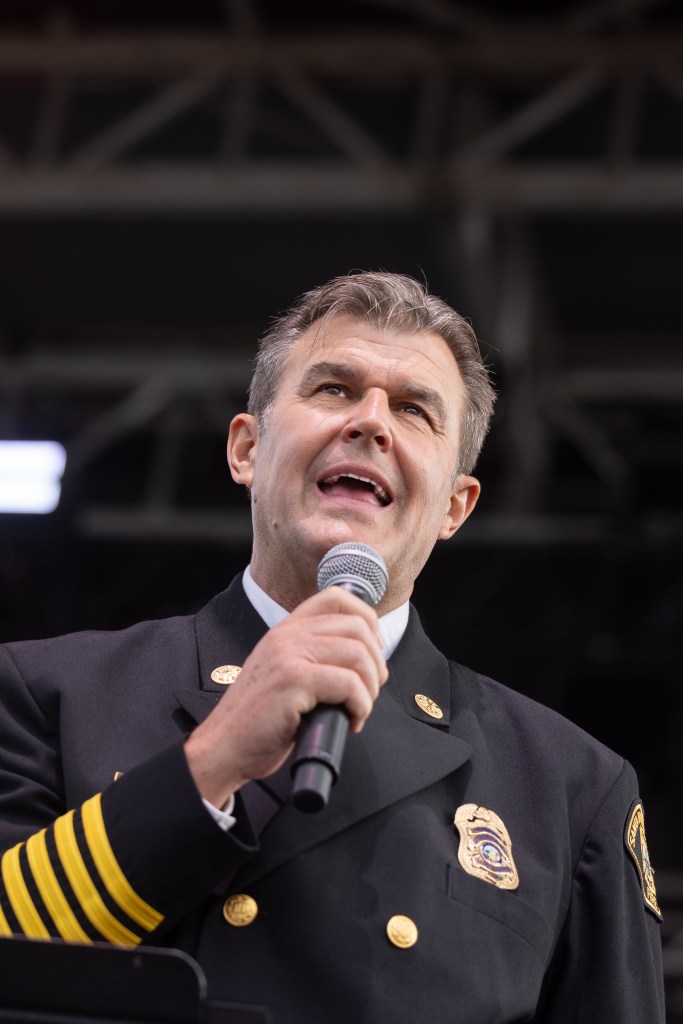 “The department doesn’t work without leadership like yours,” Prince Harry said to the soon to be retired fire chief. “You have managed to completely destroy any stigma that exists, and the leadership you’ve shown your team is exemplary.”
