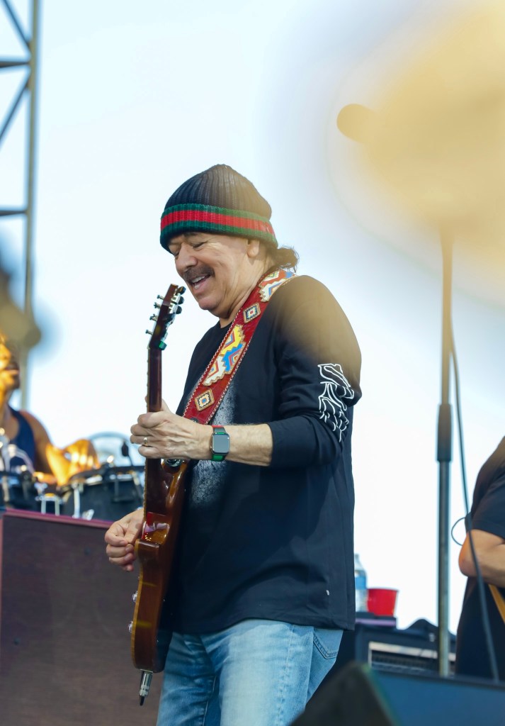 Watching Carlos Santana play is a sheer privilege. Hit after hit — he played from a seated position, as we later learned he was preparing for corrective back surgery. His set felt like watching a studio jam session, with him brilliantly riffing off his band.