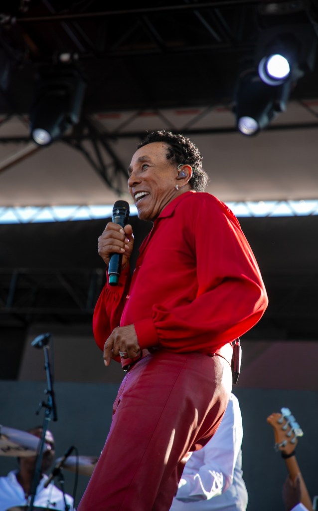 Then there was Smokey Robinson. Dressed in red leather pants and a matching poet blouse, he danced with just about every woman on that stage. He conducted the rapt crowd like an orchestra during “Cruisin’.”