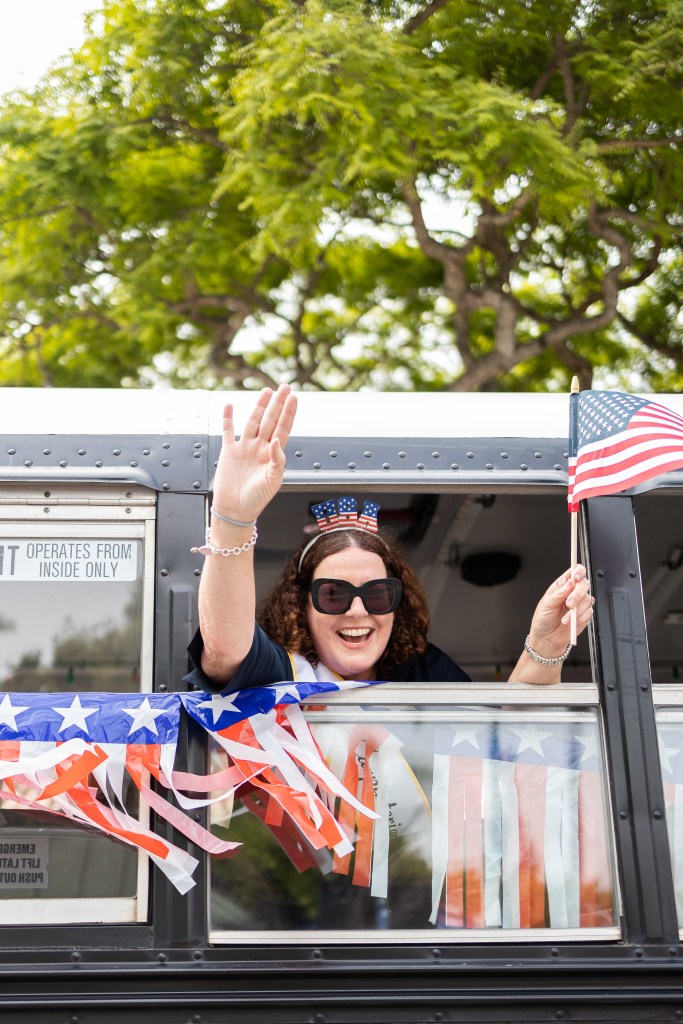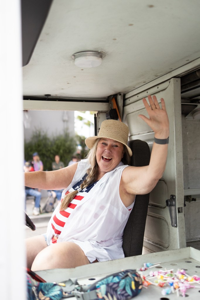 In addition to flaunting impeccably restored historical vehicles, Rods and Roses also serves as an opportunity to drive home philanthropy in the community. Cofounder and Director Mike Lazaro stated that the show “creates awareness and opportunities” and donates funds raised to multiple local nonprofit organizations. Following the car show was Carpinteria’s “world famous” Independence Parade, to quote commentator John Palminteri, who was joined by 8-year-old Siena Kelly at the announcer’s platform. The small town parade features pillars of Carpinteria, ranging from EJ Harrison and Sons Waste Management, to City Council members, Carpinteria’s Seniors Group, and Carpinteria High School cheerleaders, among others.