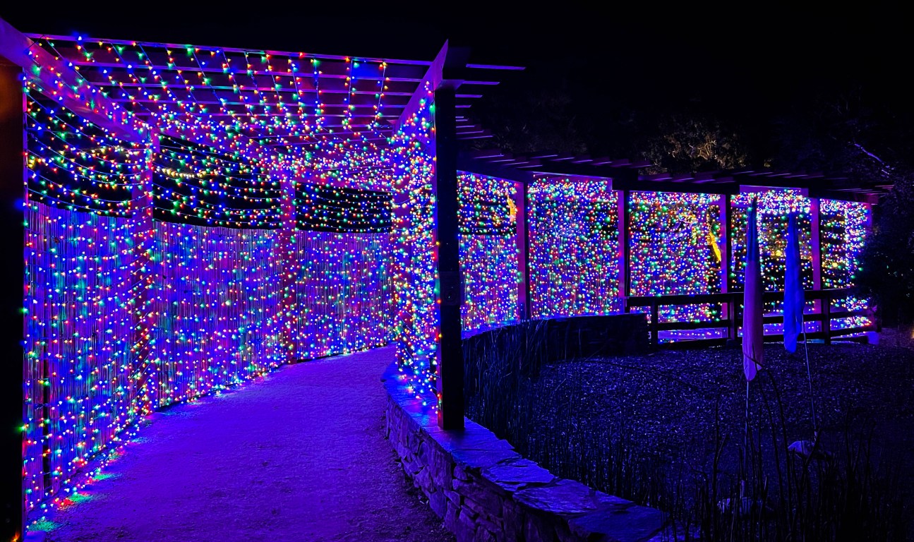 November 15, 2022 (San Luis Obispo, CA) – The San Luis Obispo Botanical Garden, (SLOBG), announces Holiday Pet Parade in collaboration with Woods Humane Society, led by Jolly Old Saint Nick on December 4, 2022. Leashed and friendly dogs are welcome to walk in the Pet Parade from El Chorro Dog Park to SLO Botanical Garden on December 4th at 4 pm. This event is in addition to the season-long extravaganza, Nature Nights, a holiday light and art exhibit for the entire family, going from November 11, 2022, through January 8, 2023. Tickets are not required for the pet parade; however, tickets for Nature Nights can be purchased online at my805tix.com.