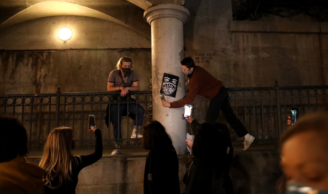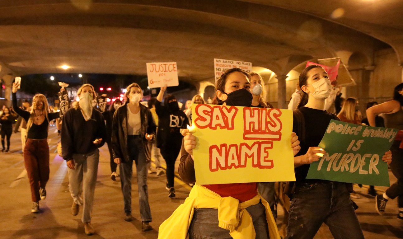 Protesters in Santa Barbara took to State Street late Friday night to protest the murder of George Floyd.