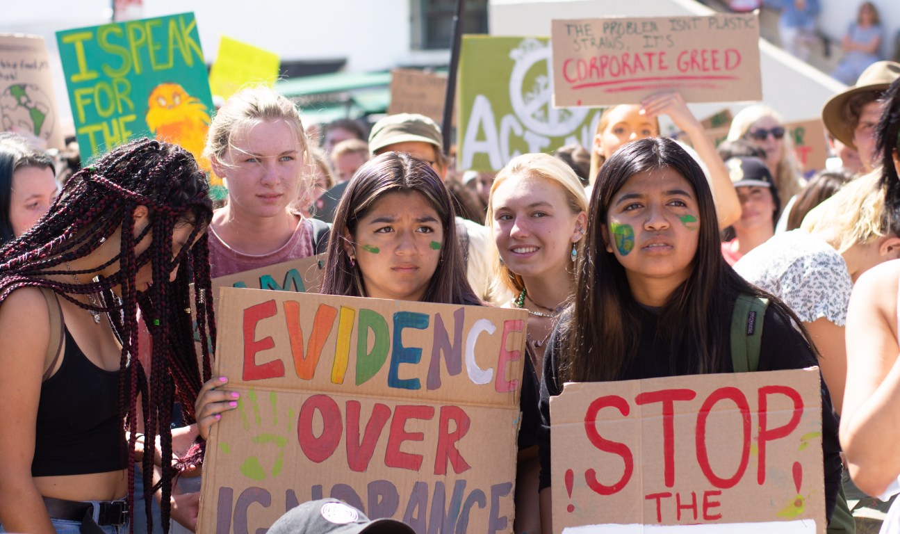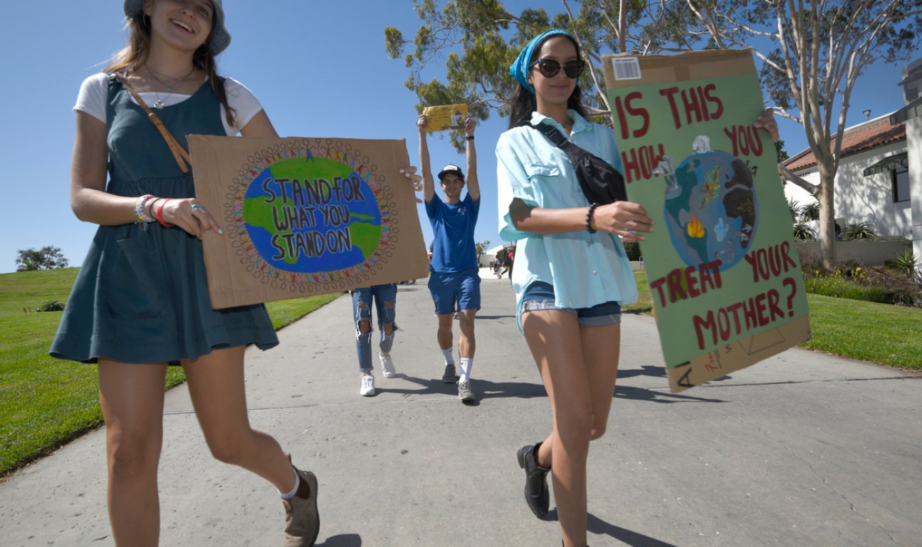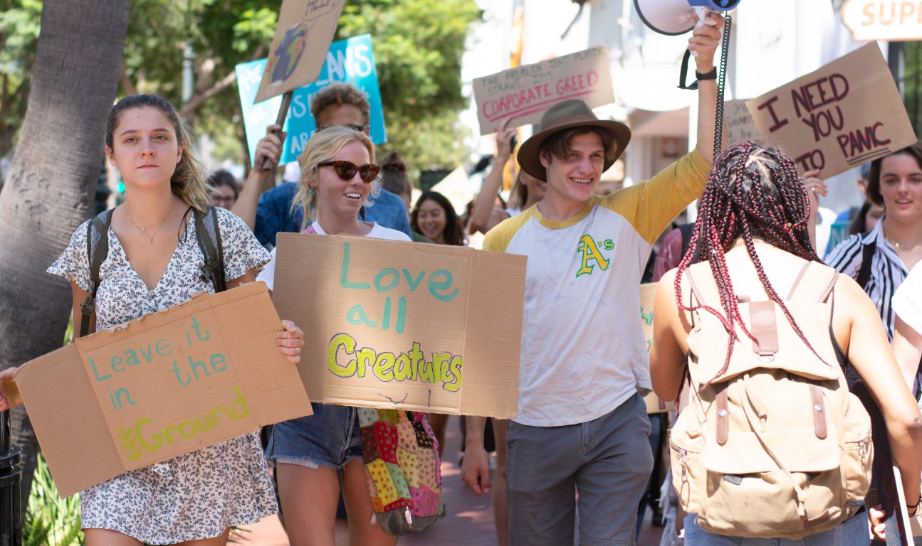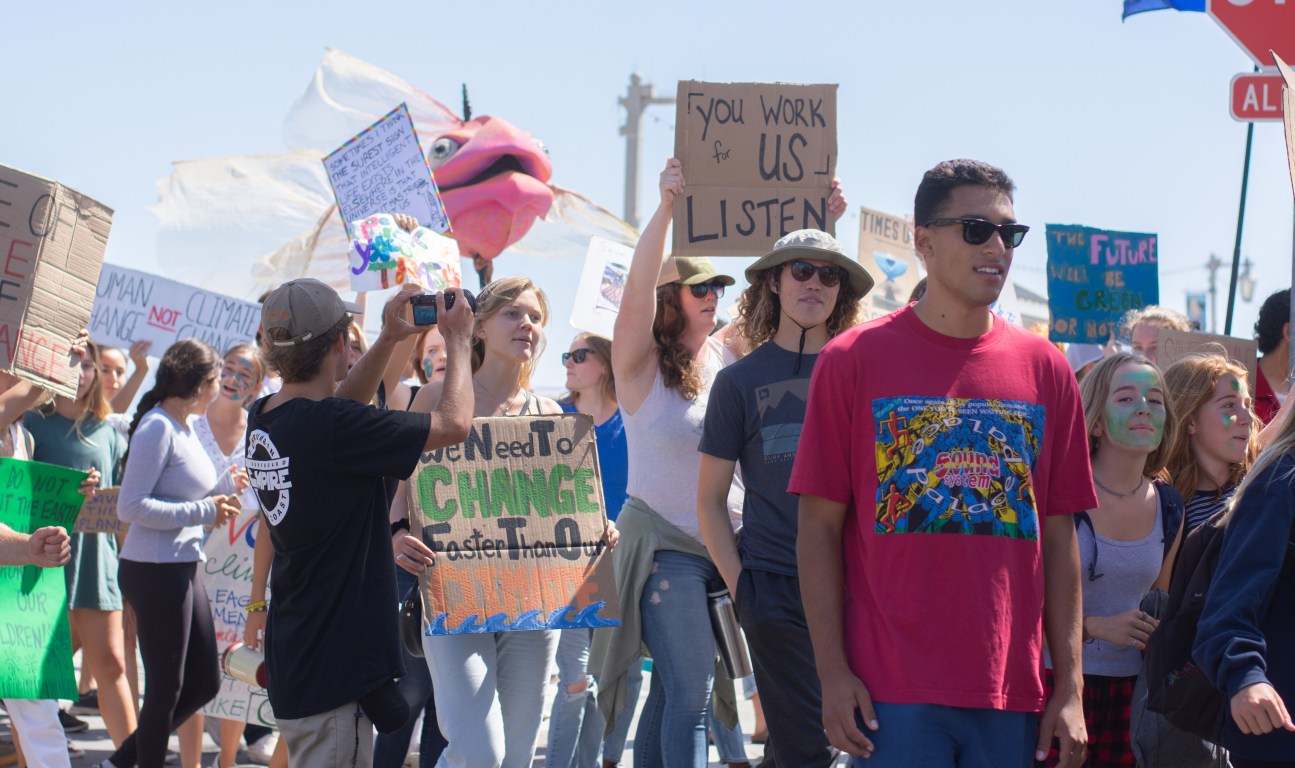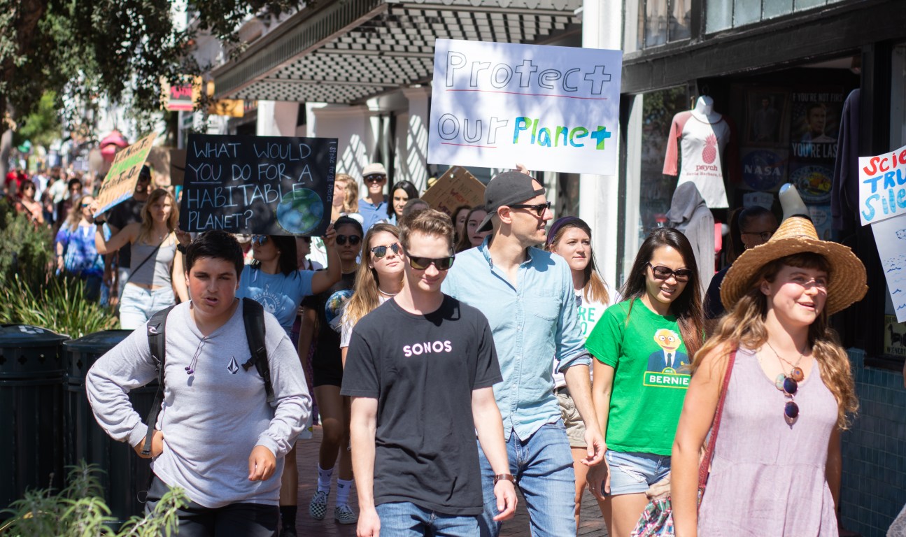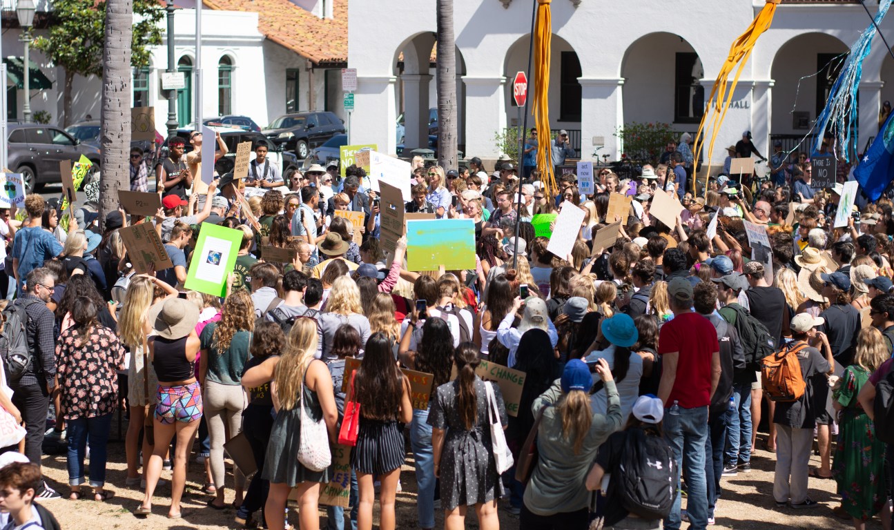Around a thousand people in Santa Barbara joined the first day of a week-long climate strike, led by students at Santa Barbara High School and City College. The group gathered around De la Guerra Plaza and students were invited to share their concerns about the future and the current administration’s negligence in addressing climate change. One of the speakers reminded the audience that the legal age to register to vote was only 17 and encouraged students to sign up immediately. The group then marched down State Street, to Stearns Wharf, and back again.