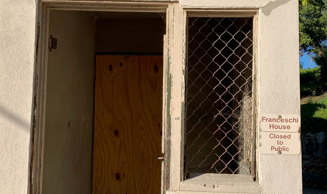As you come up the long driveway, this is your first close-up view of Santa Barbara’s abandoned “White House,” aka the Franceschi House.