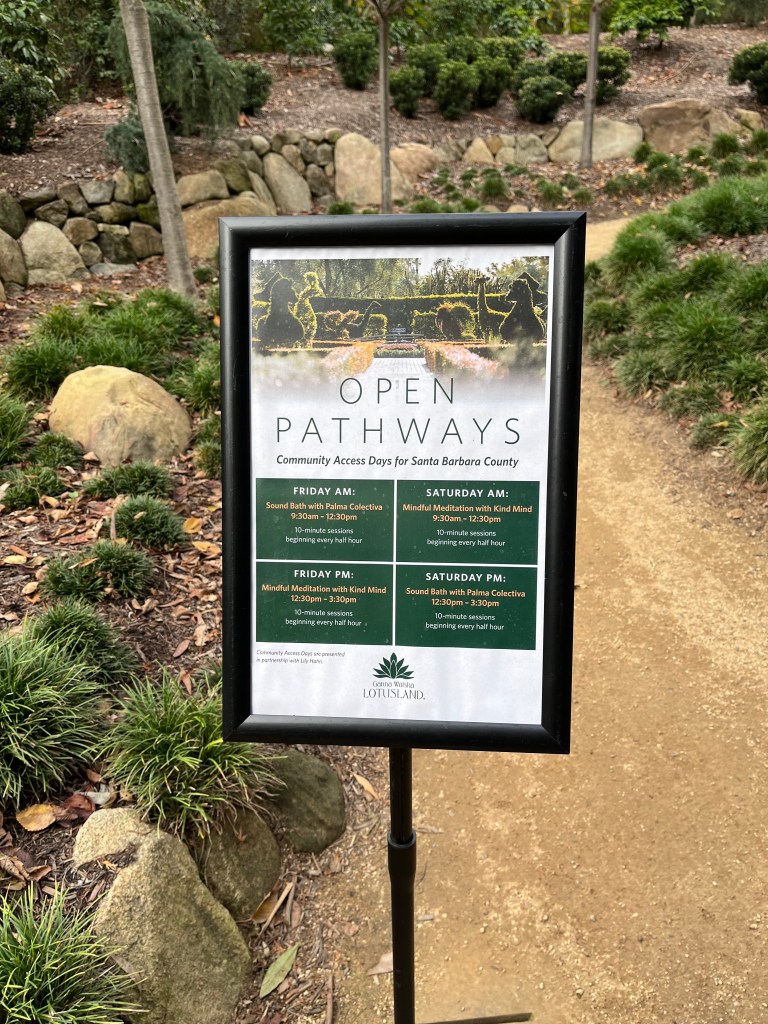 Sound baths were part of the Lotusland Open Pathways Community Access Day, November 18, 2023 | Photo: Leslie Dinaberg