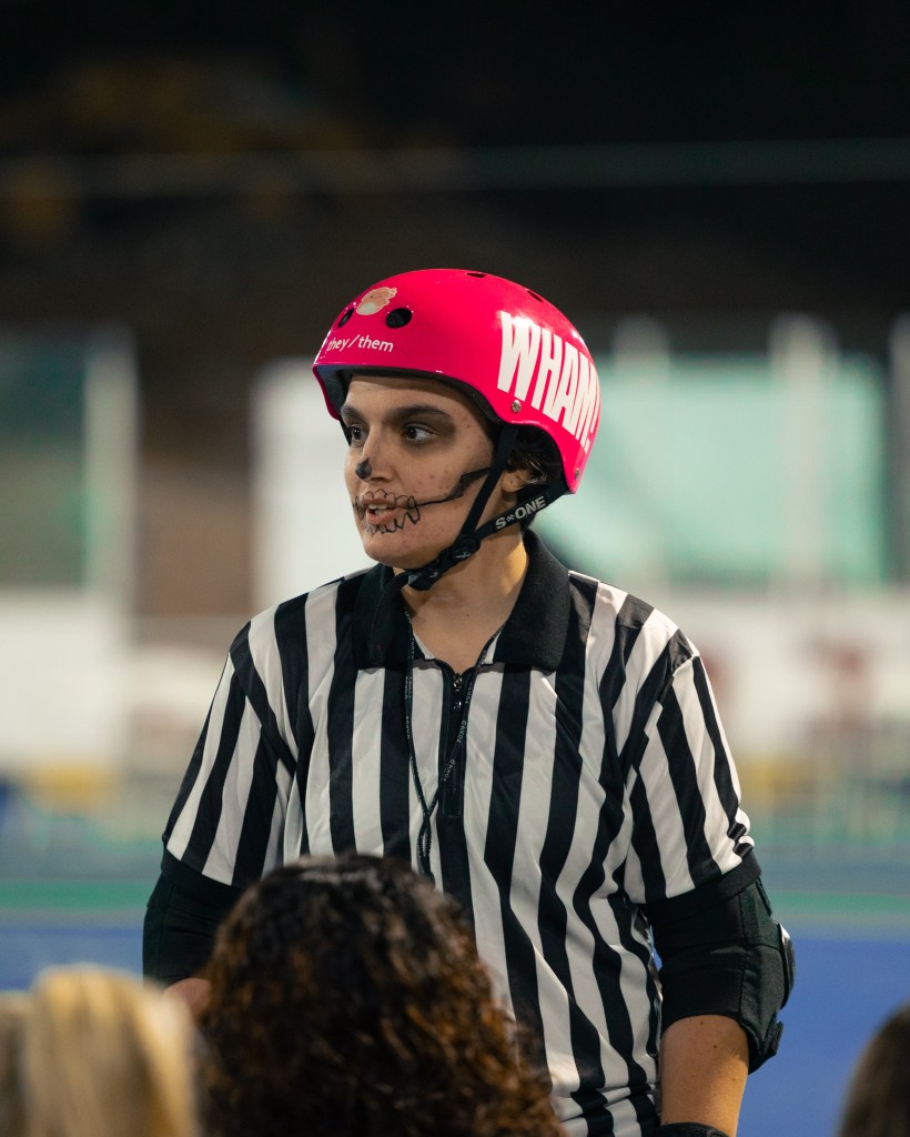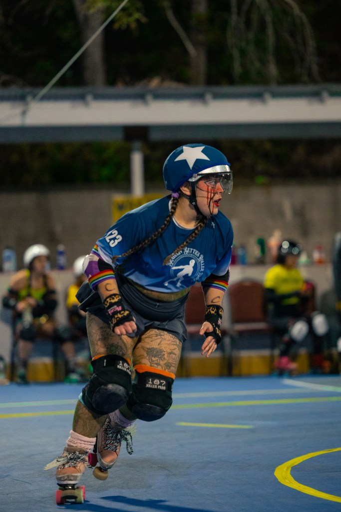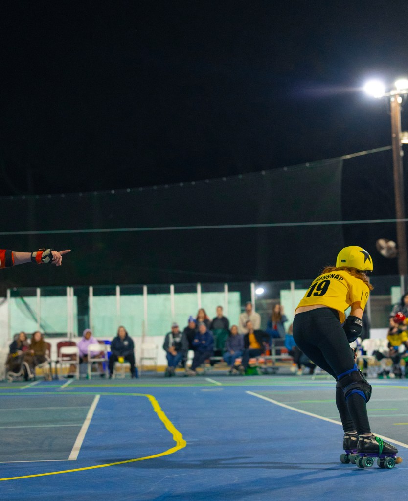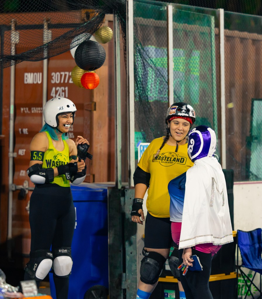 And the vibe was merry ― both teams are members of gender-inclusive leagues, with the organization Free Mom Hugs on hand to dispense free pins, stickers, flags, and yes, a few hugs. Xanadu Skate Boutique had a table filled with skating goodies. Everyone felt welcome and everyone seemed happy to be there.