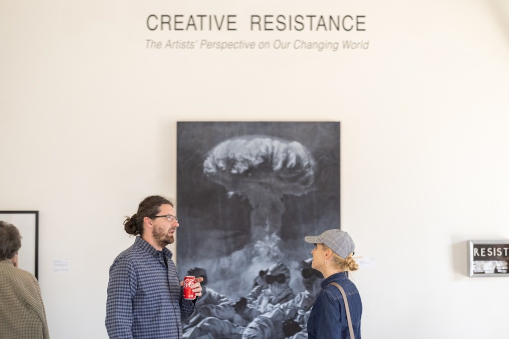 Guests of all ages took in the work at ‘Creative Resistance/The Artists Perspective on Our Changing World’ at CAW, August 8, 2025 | Photo: Ingrid Bostrom