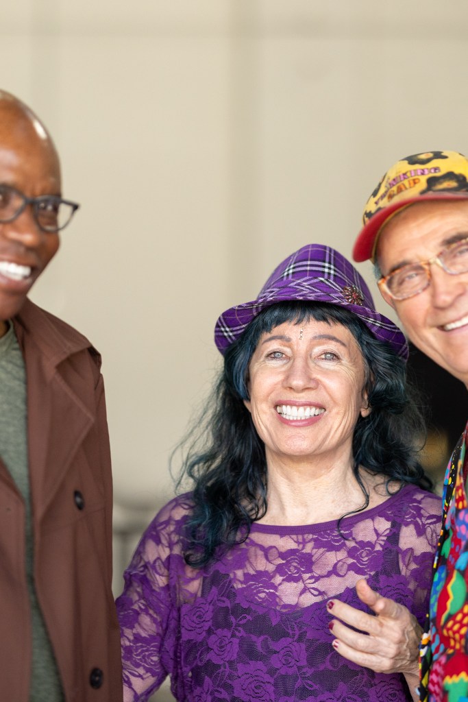 Artists Judy Nilsen, Pali X Mano, and Dug Uyesaka at ‘Creative Resistance/The Artists Perspective on Our Changing World’ at CAW, August 8, 2025 | Photo: Ingrid Bostrom