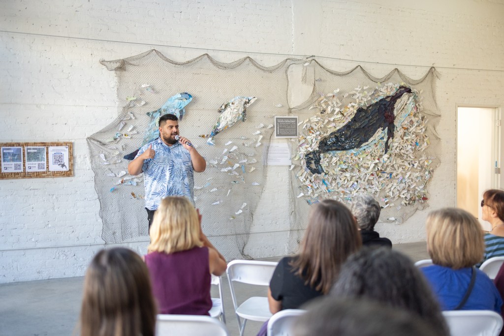 Councilmember Oscar Guttierez speaks at ‘Creative Resistance/The Artists Perspective on Our Changing World’ at CAW, August 8, 2025 | Photo: Ingrid Bostrom