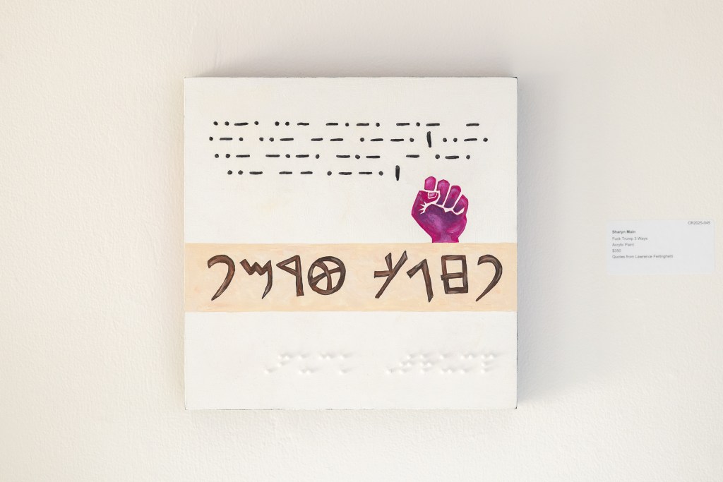 Artwork by Sol Hill on view at ‘Creative Resistance/The Artists Perspective on Our Changing World’ at CAW, August 8, 2025 | Photo: Ingrid Bostrom