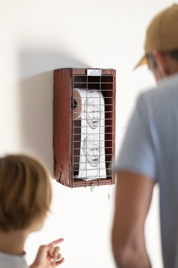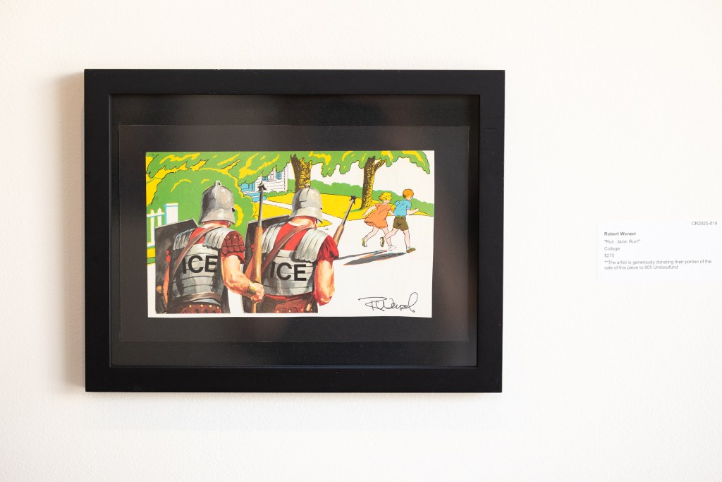 Artwork by Robert Wenzel on view at ‘Creative Resistance/The Artists Perspective on Our Changing World’ at CAW, August 8, 2025 | Photo: Ingrid Bostrom