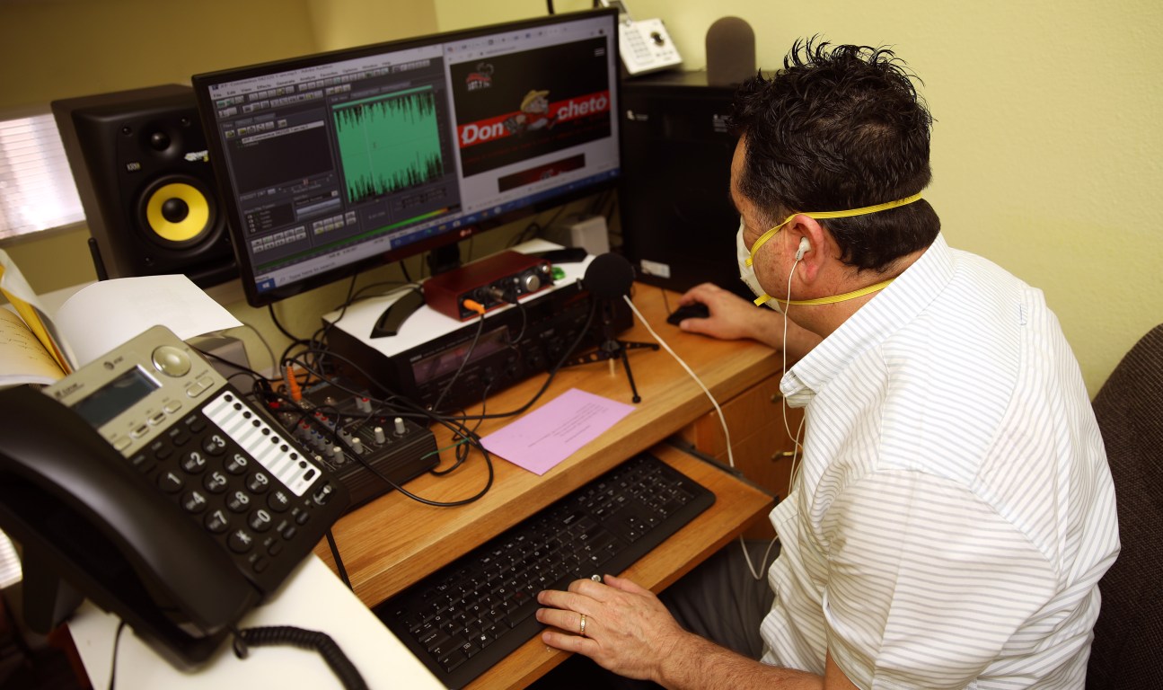 Radio host Jose Fierros at his home studio. Jose has been helping inform the Spanish speaking community about Covid-19.
