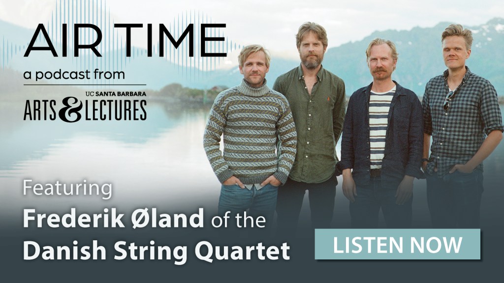 Welcome to Air Time, the podcast of UCSB Arts & Lectures. Today’s guest is Frederick Øland. He’s one of the violinists with the Danish String Quartet. The Quartet will be in Santa Barbara on Friday, April 10, with the Danish National Girls’ Choir for a concert at the Granada Theatre at 7 p.m. presented by UCSB Arts & Lectures. Welcome, Frederik.