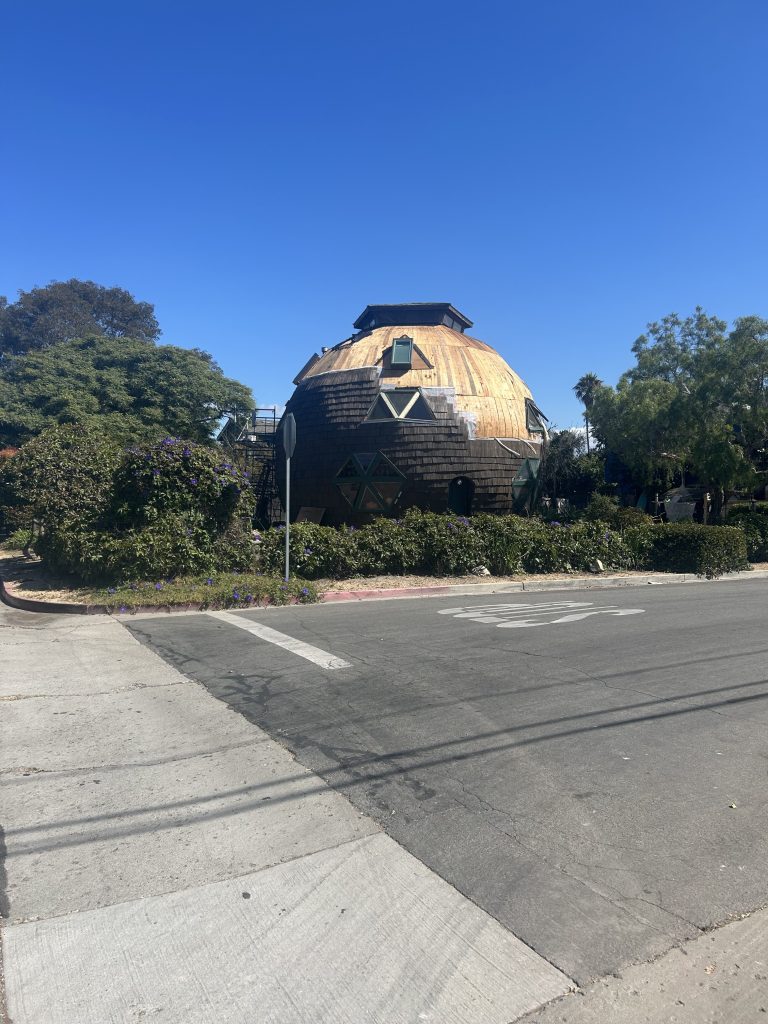 We’ve got one more stop this episode. Let’s head south, closer to the water. On Sabado Tarde, you’ll find a house shaped kind of like an egg. It’s Isla Vista’s dome house. Flowers grow in the yard around it. It’s a whimsical, peaceful corner lot.