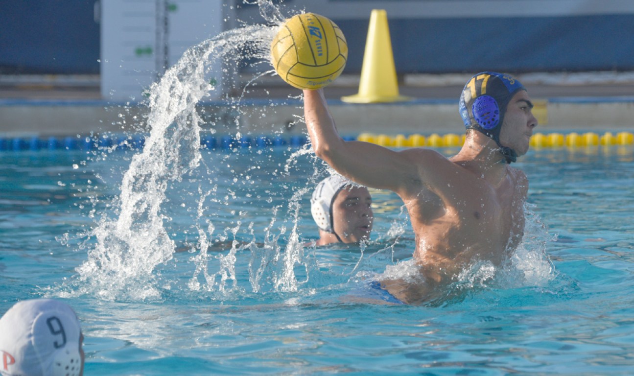 Nathan Puentes fired in a penalty shot against Pepperdine during UCSB’s early season streak of 16 consecutive water polo wins.
