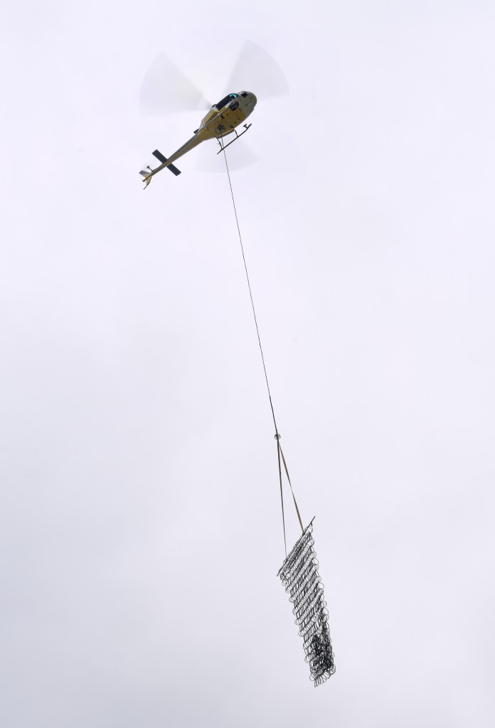 Workers used a helicopter and deep-set anchor points to string the heavy mesh of steel rings across the creek. Meanwhile, the echoes of 1/9 still ring through the area.
