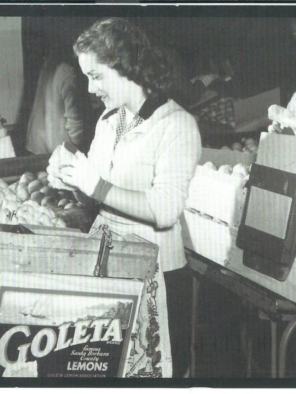 Delia moved to the U.S. at the age of 16. Upon arrival, she began working for the Goleta Valley Lemon Association packinghouse where she caught the eye of photographers working for an agricultural trade publication. They took pictures of her picking, sorting and washing lemons, the journey of the lemon so to speak, on its way out of a packinghouse. Little did she know that one of the photos would become, in time, iconic to Santa Barbara County’s agricultural history appearing on postcards, posters and the local newspapers come each Fiesta, and especially the Goleta Lemon Festival. In 2001, it was chosen as the main image for the Goleta Community Heritage Project appearing in all of their publications. To this day the picture still hangs at the Stow House and The Old Town Coffee House in Goleta.