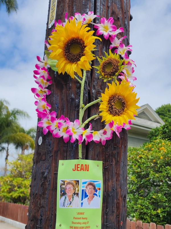 Once back in Santa Barbara, Jeanne lived an eclectic life, working in art-related jobs and volunteering at the Braille Institute. Jeanne was outgoing and readily connected with people, especially eccentric characters. She had a passion for collecting and sharing curios found at yard sales and thrift shops, all the while engaging with fellow browsers. A gifted fiber artist, Jeanne knit sweaters, scarves, and hats in intricate patterns and color blends. While she often lamented how few “sweater weather” days there are in Santa Barbara, that never stopped her from creating warmth with her hands. Her home and garden also reflected Jeanne’s Bohemian spirit — whimsical spaces filled with flowering plants, art, lights, and quirky figurines. Her beloved cat, Kate, was always nearby.