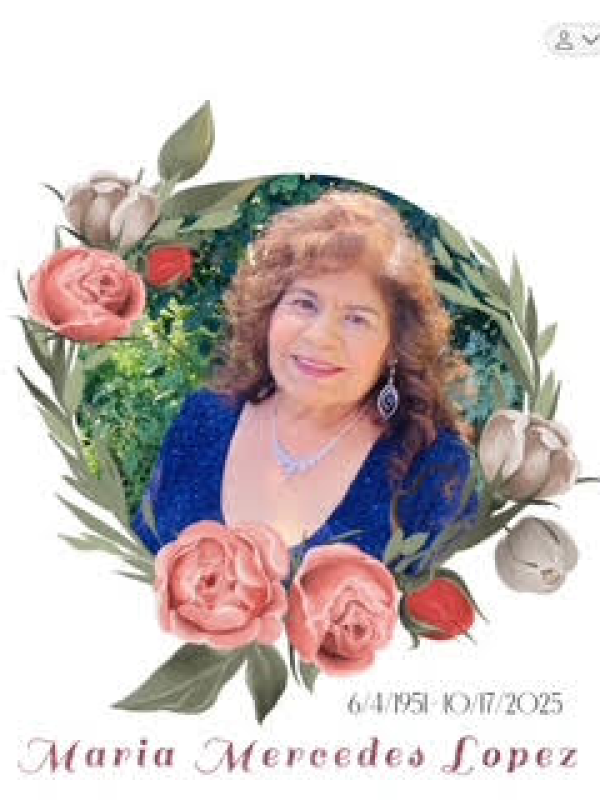 Maria Mercedes Lopez, The beloved wife to Juan Lopez Luevanos and devoted mother to Alberto, Martha, Efrain, John, Saul, Adrain, Jesus and Maria, passed away peacefully on October 17th, 2025 Surrounded by her loved ones in her final moments,